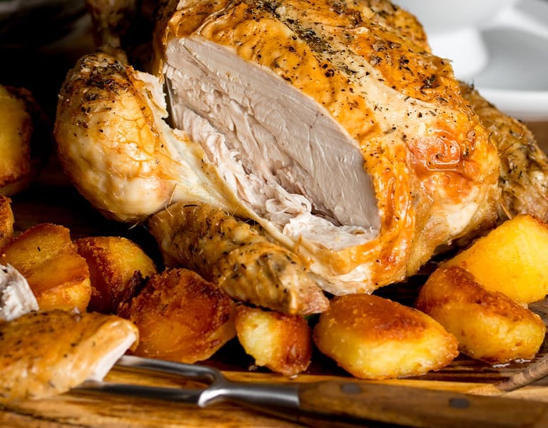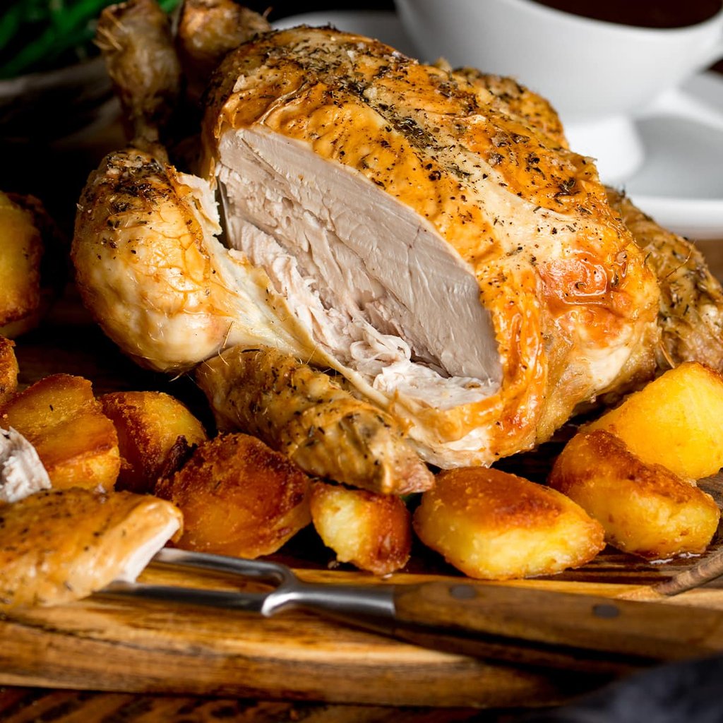 Rubbed and stuffed with butter, herbs and spices and roasted with alien onions, new popotoes and carrots of happiness, with pan-drip gravy. Served in half and full portions, this well-practiced dish is well-loved by the James gang- especially Jesse himself.