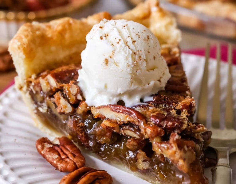 Sweet and savory pecans are stuffed to the top of this wonderful dessert, served with a scoop of cinnamon ice cream. Just be aware that you may have to scrap for the last slice- or until the next one comes out of the oven!