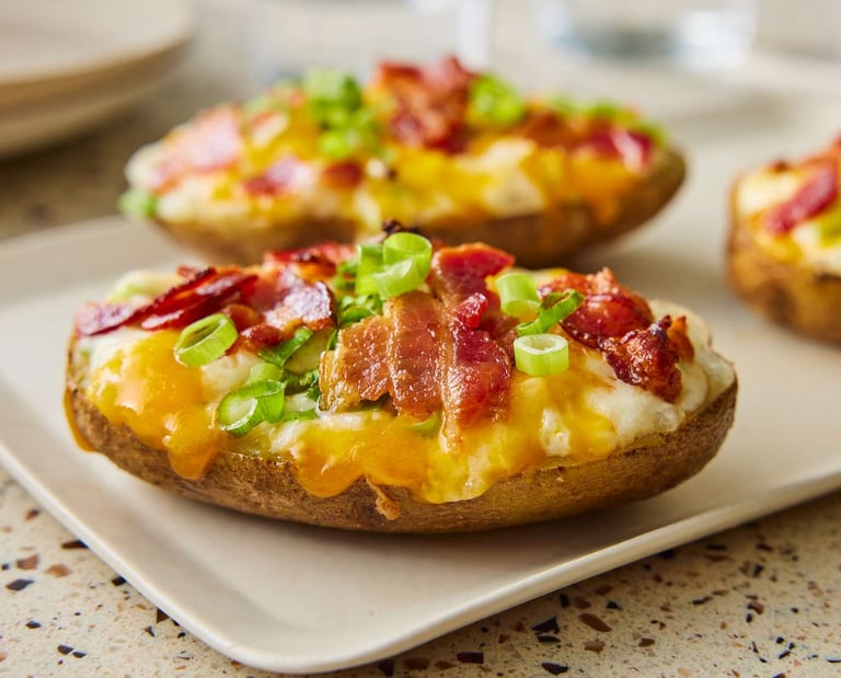 A massive russet popoto dressed to order, with options such as sour cream, cheese, butter, crispy bacon bits, broccoflower, and more- you'll find more and more goodness the deeper you dig!