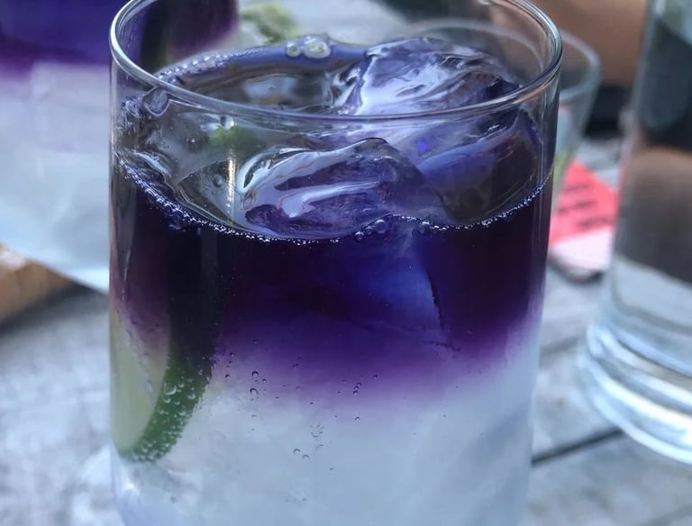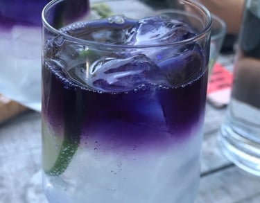 Try not to let this drink leave you broken. We add botanical gin to tonic water, and butterfly pea flowers. Then, a little green garnish pierces the wall between the two.